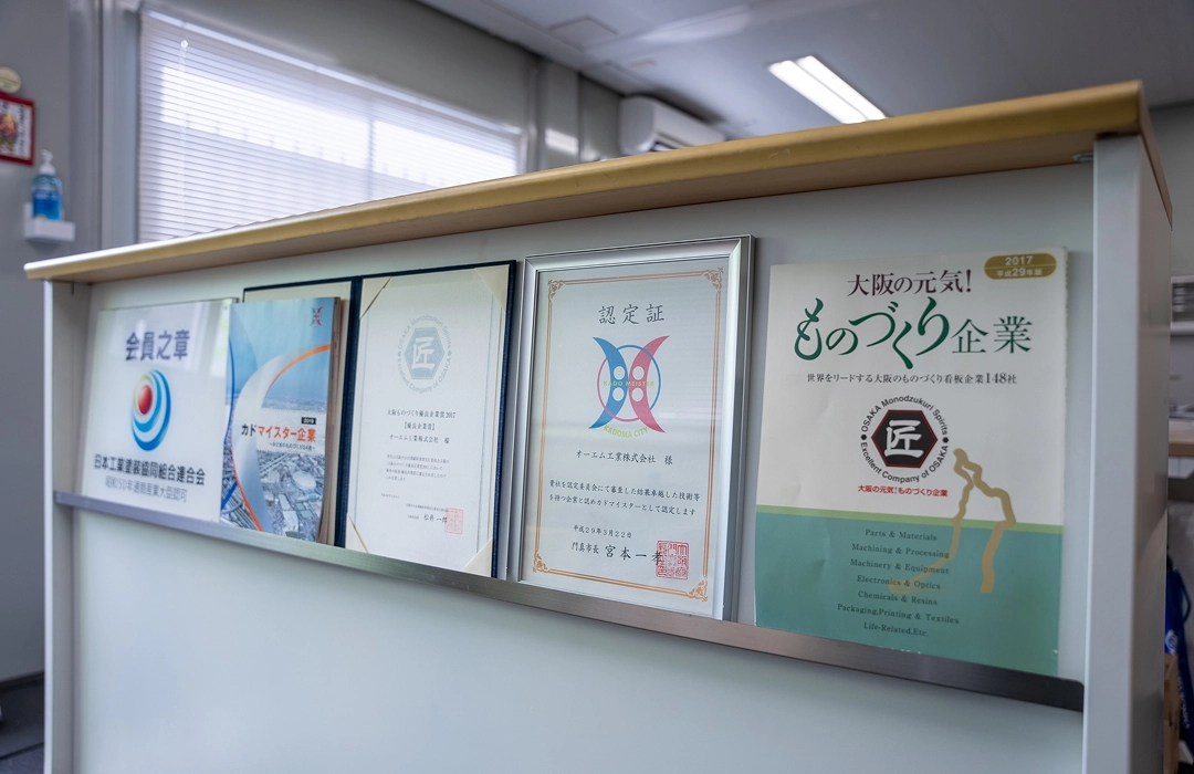 | 2017年 | 「大阪府ものづくり優良企業賞2017「匠」に認定 |